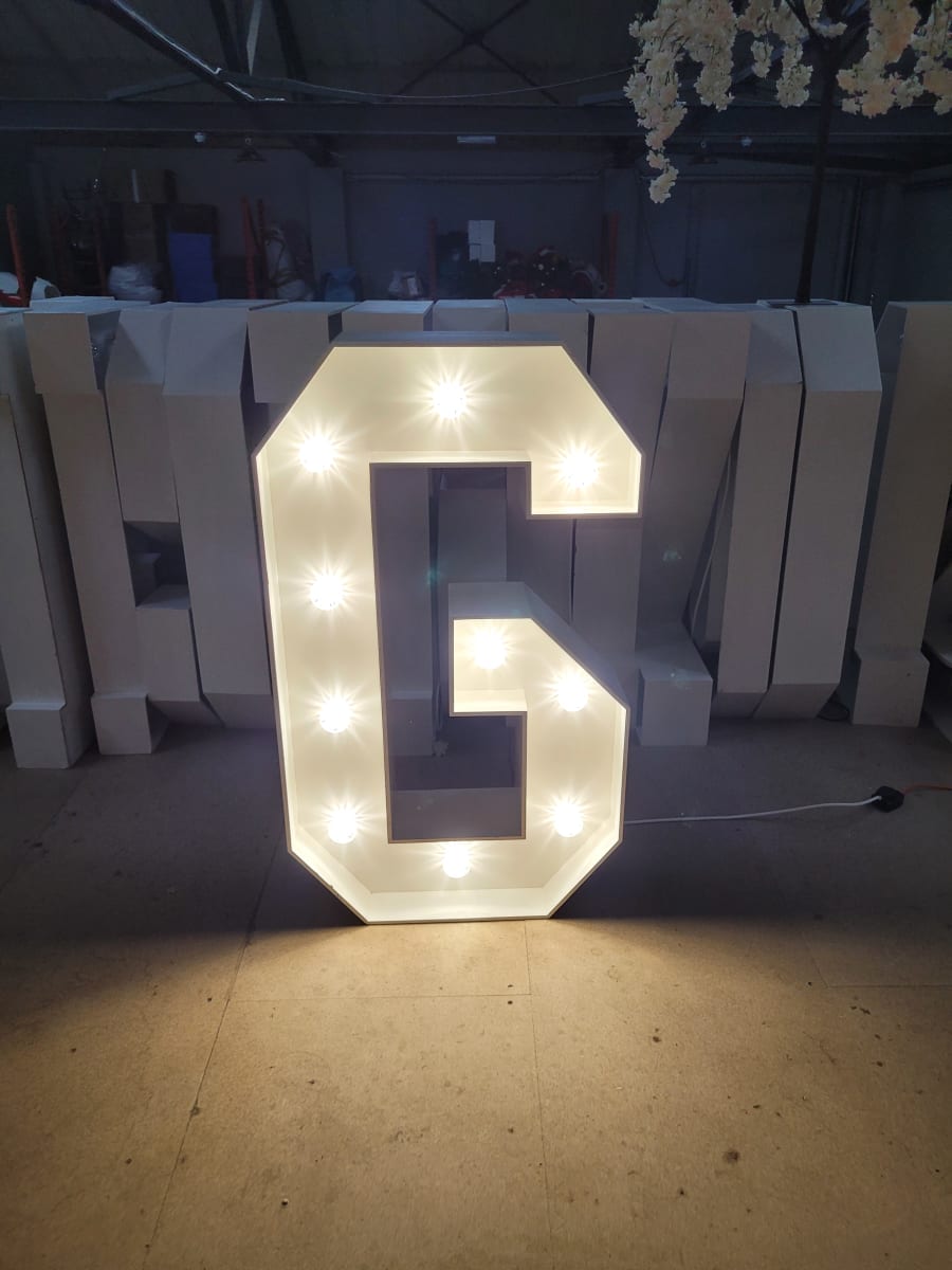 Make a lasting impression with our LED 4ft light up letter G. Contact us today to book this stunning decor piece for your event.