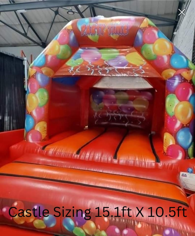 Our red bouncy castle with a balloon design on is small and great for younger kids to enjoy or for smaller gardens . Watch on as your guests bounce away having a great time. This castle also includes shower / sun cover and crash mats.