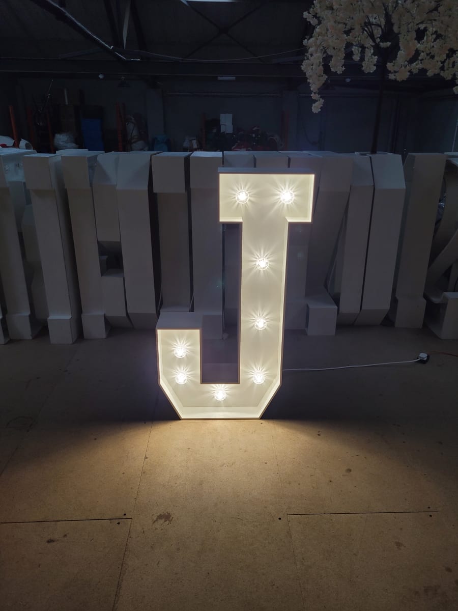 Make a lasting impression with our LED light up letter J. Contact us today to book this stunning decor piece for your event.