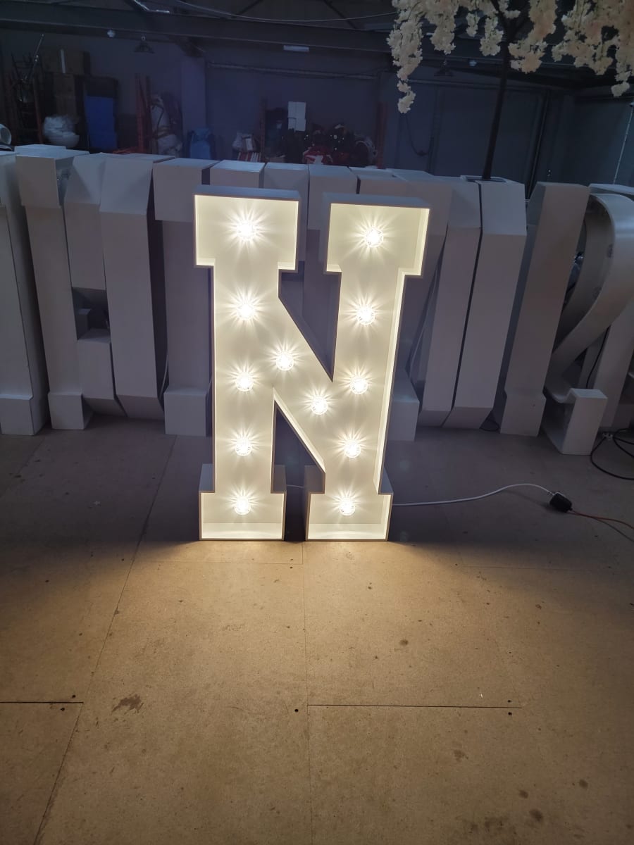 Make a lasting impression with our LED 4ft light up letter N. Contact us today to book this stunning decor piece for your event.